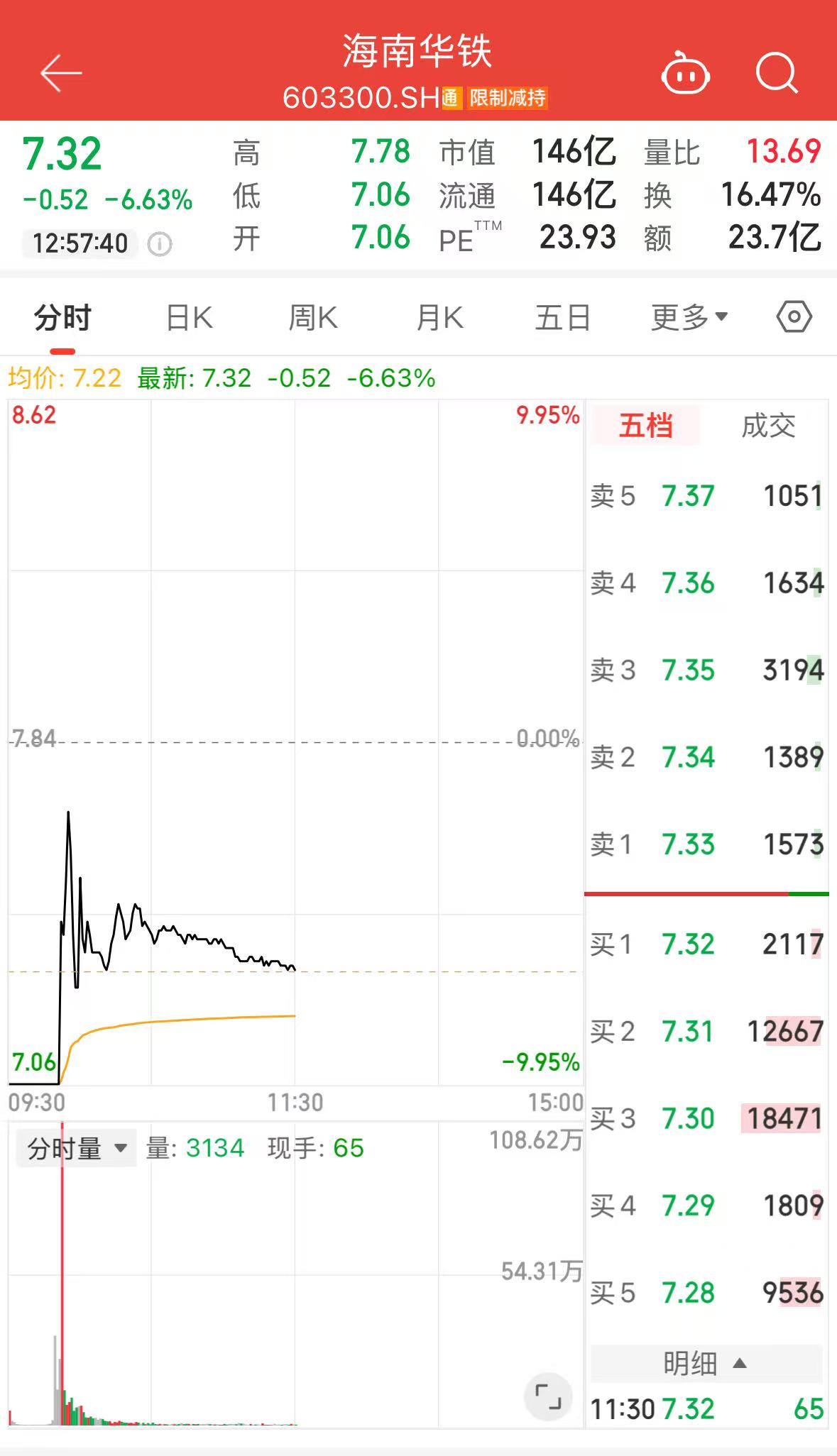 2025-10-15博鱼体育,博鱼体育官方网站,博鱼体育APP下载10月13日,海南华铁(603300.SH)打开跌停板,截至午盘跌6.63%,报7.32元/股,主力净流出1.21亿元,总市值146亿元。