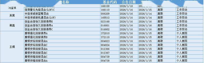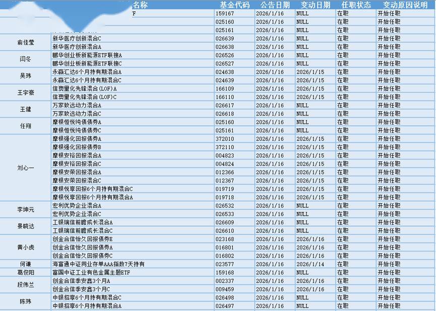 基金经理是一只基金产品最核心的成员,能决定一只基金的投资方向、投资策略以及投资风格,基金经理出色的择时选股能力和调研预测能力是基金业绩的有力保证,所以基金经理是投资者在选择基金产品时的重要依据。基金经理的变动很大程度上会影响到基金产品未来的表现,是一个需要特别关注的信息。1.16日共有20位基金经理发生任职变动。