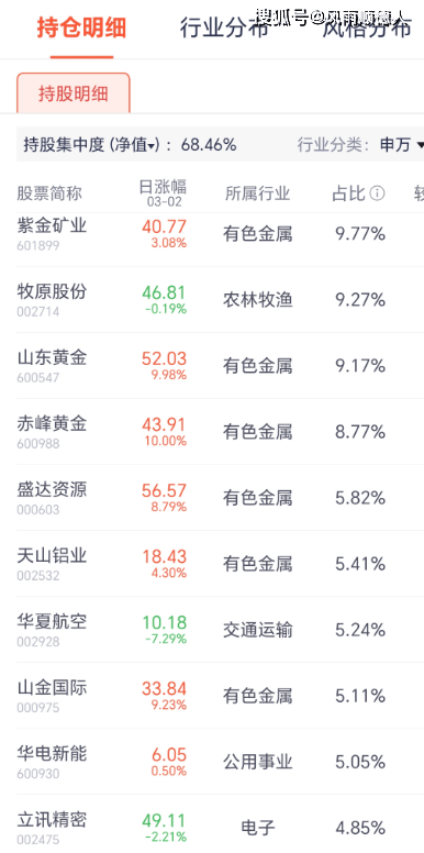 该基金前十大持仓中赤峰黄金、山东黄金涨停,紫金矿业、盛达资源、天山铝业、山金国际涨幅较大,华夏航空跌幅较大,前十持仓占总持仓的68.46%,由于华夏航空的回撤,我认为基金不太可能还是原来的持仓构成,而基金风格本身已有有色金属行业的仓位,不排除基金经理在当下已经全线转向资源风格。基金净值相对跑赢市场(属于一般成长行业偏资源方向的主动型混合基金,但四仓位不足以支撑今天涨幅,基金经理已进行调整仓位)【基金规模0.02亿元】。净值增长较差的是东财卓越成长C,