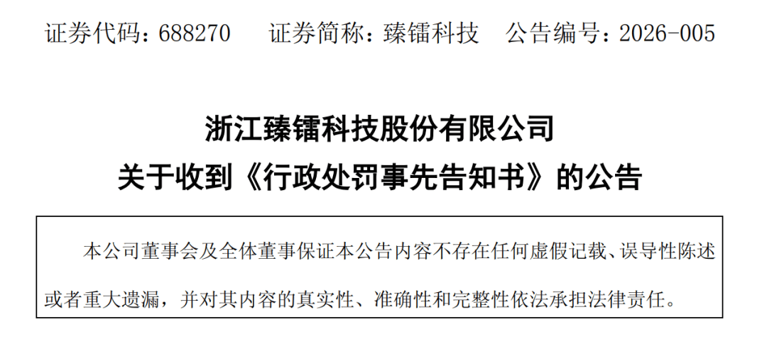 上周五晚,证监会发布2025年全年执法情况,表态“依法从严打击违法违规行为”。就在监管亮剑的同一天,臻镭科技公布了处罚结果,成为严监管下的一个鲜活缩影。